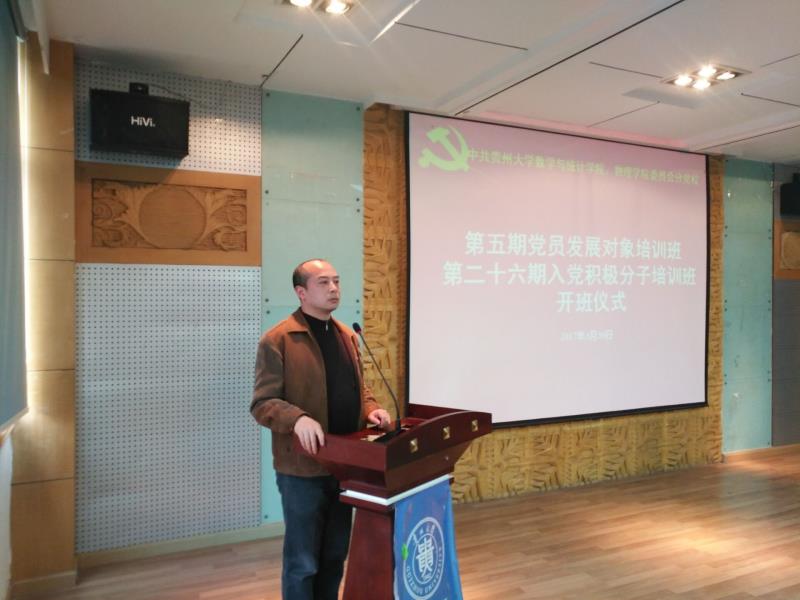 2017年3月30日,FB体育(中国)官方网站-FB SPORTSFB体育(中国)官方网站-FB SPORTS分党校与数学与统计学院分党校在FB体育(中国)官方网站-FB SPORTS北校区博学楼313会议室联合举行了第五期党员发展对象、第二十六期入党积极分子培训班开班仪式。出席此次开班仪式的嘉宾有FB体育(中国)官方网站-FB SPORTS党委书记、分党校校长王更生,数学与统计学院党委书记、分党校校长骆科扬,FB体育(中国)官方网站-FB SPORTS党委副书记陆定波,数学与统计学院辅导员贾秀楠,FB体育(中国)官方网站-FB SPORTS辅导员陈黔江以及两个学院发展对象培训班、入党积极分子培训班学员。仪式由FB体育(中国)官方网站-FB SPORTS党委副书记陆定波主持。