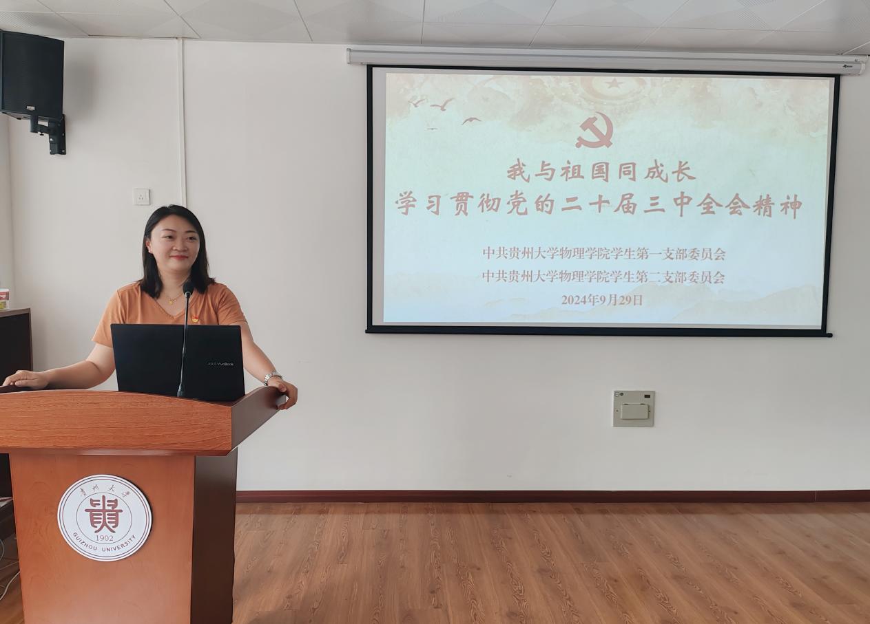 正值新中国成立七十五周年之际,为进一步学习习近平新时代中国特色社会主义思想,贯彻党的二十届三中全会精神,厚植爱国主义情怀,增强民族责任感, 2024年9月29日,FB体育(中国)官方网站-FB SPORTSFB体育(中国)官方网站-FB SPORTS学生第一、第二党支部全体学生党员在博学楼427会议室开展以“我与祖国同成长 学习贯彻党的二十届三中全会精神”主题党日活动。会议由学生第一党支部书记肖媛主持。
